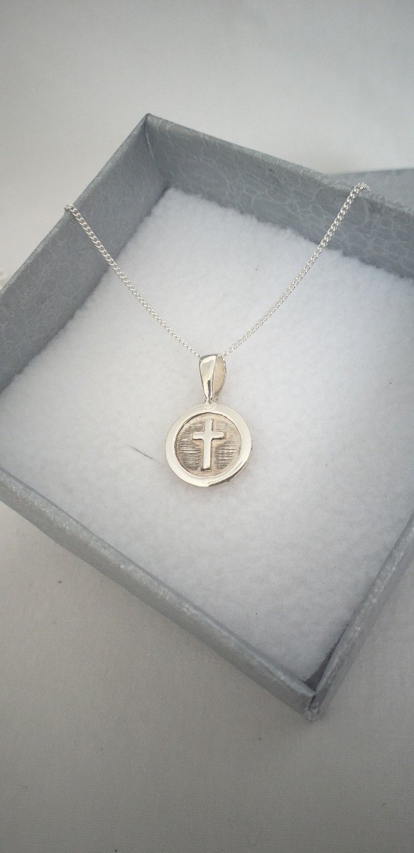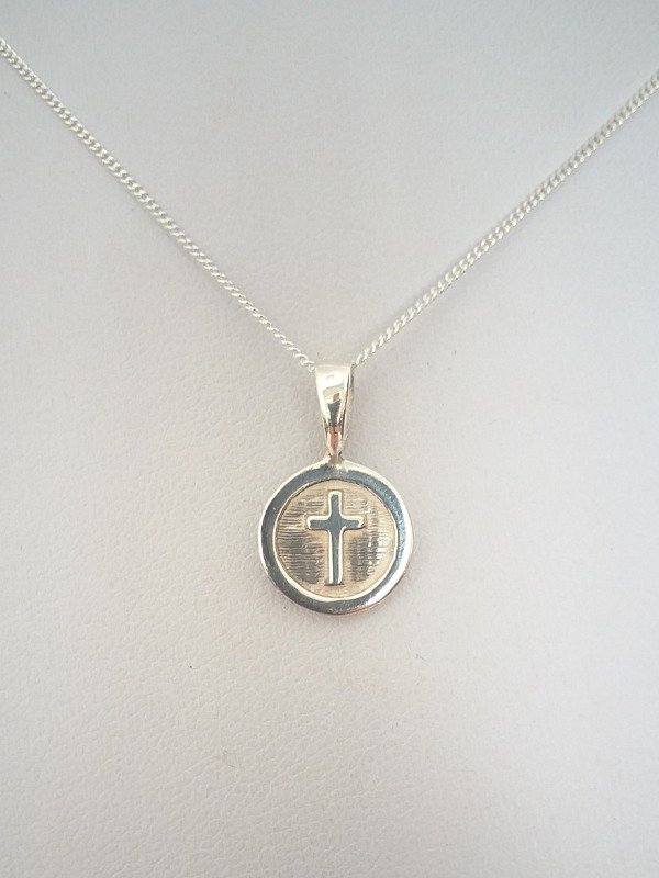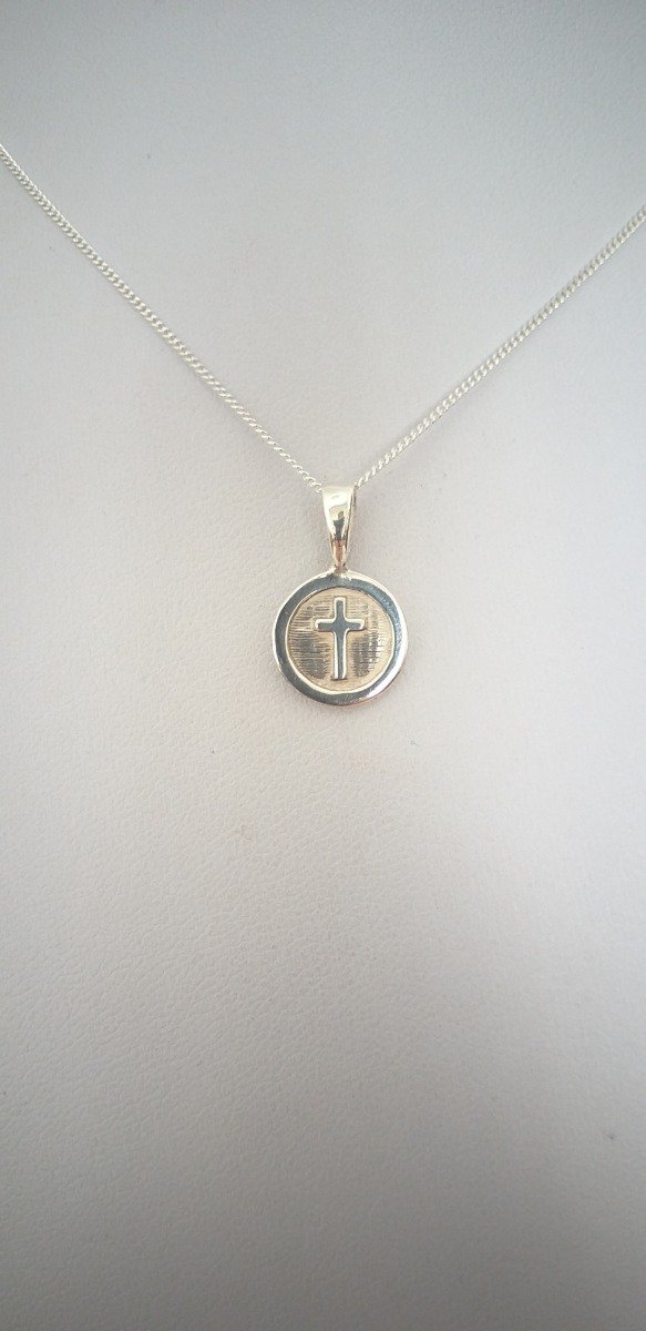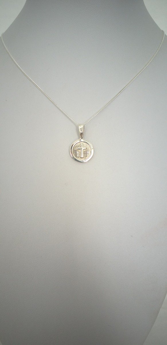 Dije circular centro cruz con cadena